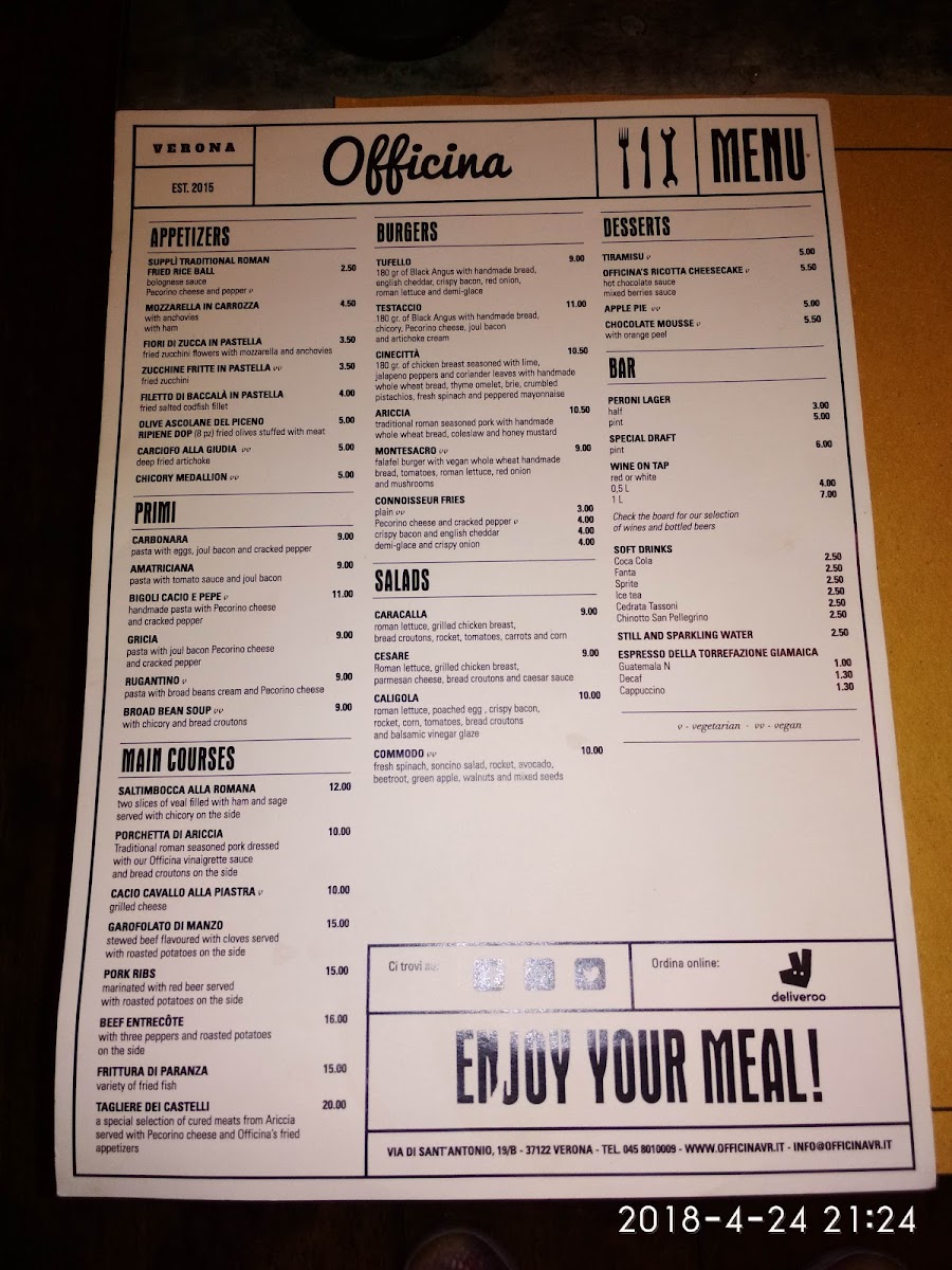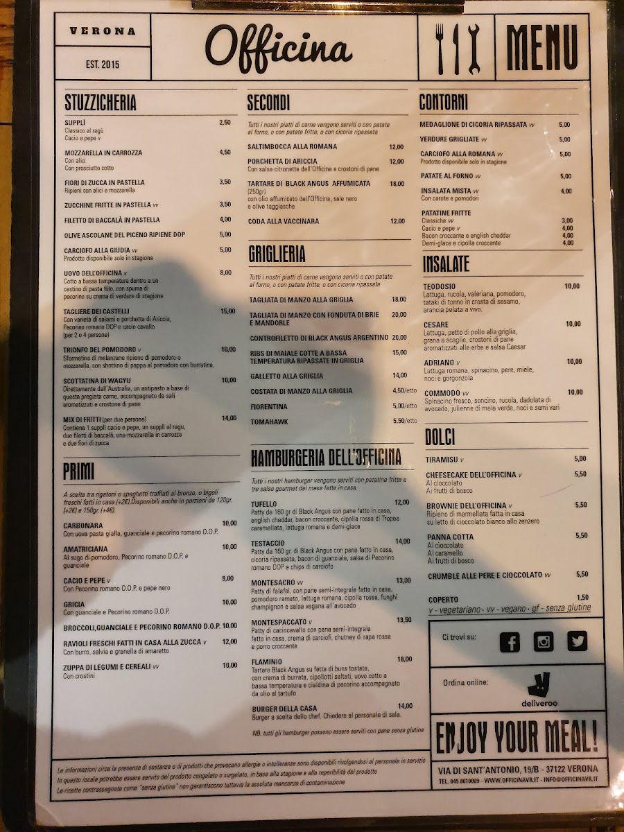 Welcome to Officina - Cucina & Laboratorio, a delightful gem nestled in the heart of Verona on Via Sant'Antonio. This charming eatery specializes in authentic Roman cuisine, offering a menu that is a testament to culinary tradition and innovation. Guests rave about the exquisite carbonara and amatriciana pastas — often considered the best in town — which showcase meticulous preparation and quality ingredients.